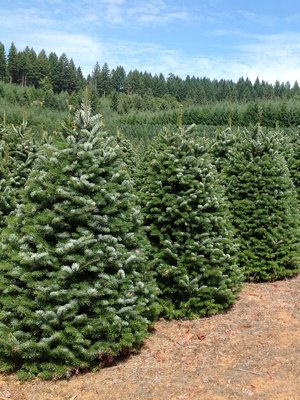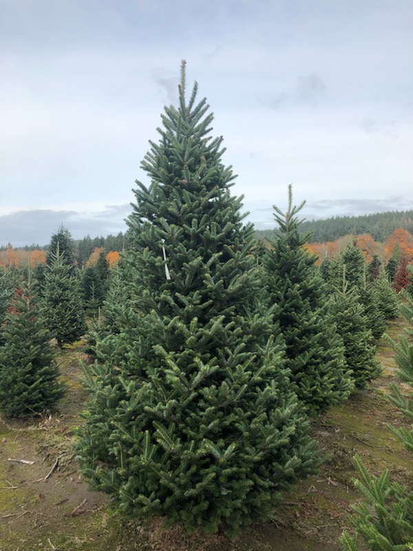 The Noble Fir tree's distinct symmetrical shape, long keep ability and strong branches make it a popular Christmas tree choice. Its branches are used in greenery arrangements to make wreaths, door swags, garland and other Christmas products. The silver blue-green needles are four-sided, measuring one inch long, and generally twist upward exposing the lower surface of the branch. This tree is native to Oregon.